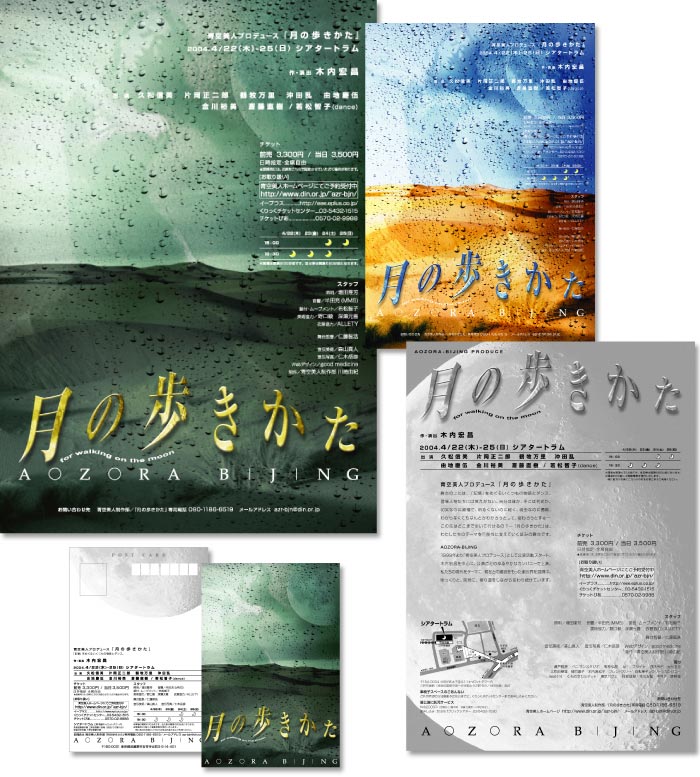 劇団「青空美人(AOZORA-BIJING)」の公演『月の歩きかた』宣伝用ポスター、チラシ、ポストカードのデザインです。
